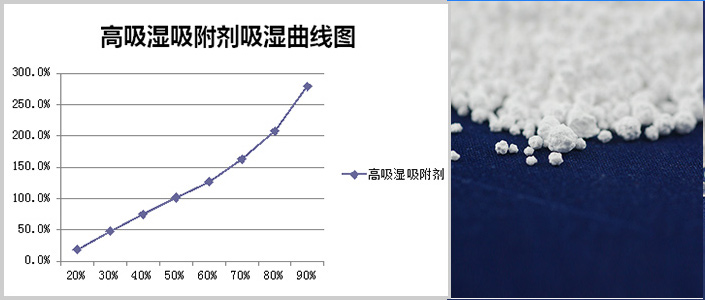 氯化物與凝膠登固化物質(zhì)進(jìn)行混合,在25℃,90%濕度條件下,吸濕能力高達(dá)280%以上,吸附劑在充分吸濕后變成凝膠狀或塊狀,不反滲。